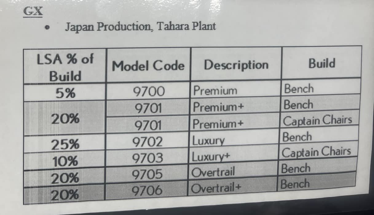 I wanted to relay some information originally shared on the GX 550 Facebook group concerning the production distribution of all Lexus GX 550 models.