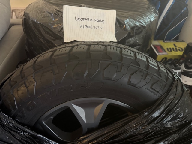 L leopard print Active member Jul 7, 2024 225 Media 29 129 Los Angeles Today at 4:54 PM #1 4 x wheels and tires Taken off at 8,085 miles No TPMS Comes with stock lug nuts and wheel locks No bends, scratches, blemishes Local pickup in Los Angeles area $1,000 obo Attachments Tires 1.jpg 126.5 KB · Views: 7 Tires 2.jpg 45.1 KB · Views: 6
