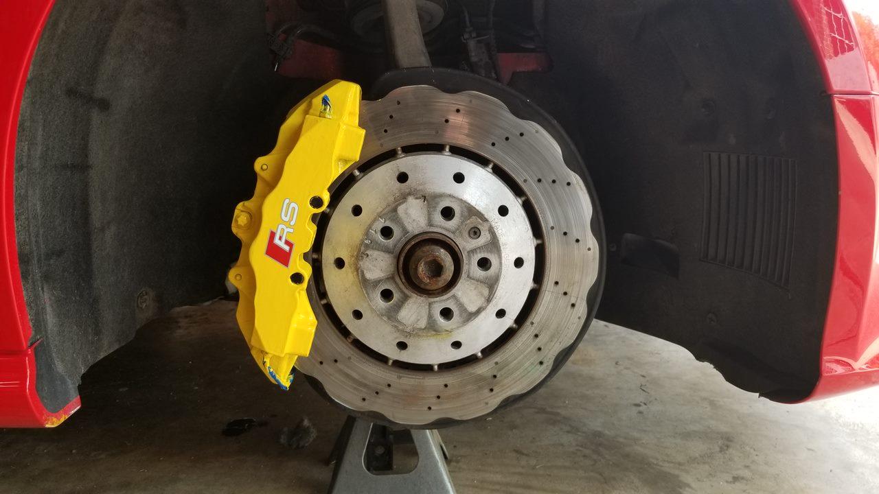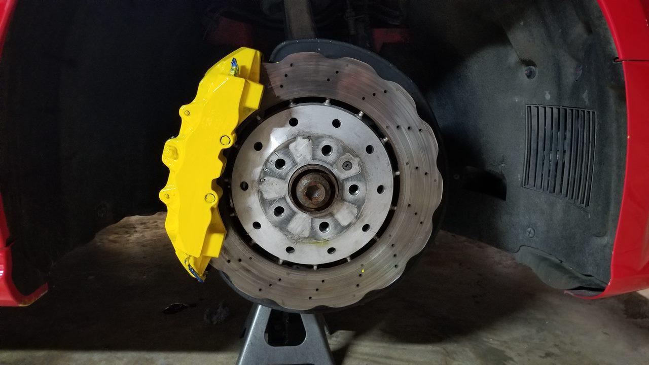 I've already noticed the cheap zinc(?) plating on my new 2025 OT has already started to tarnish. It hasn't even seen any NY winter salt yet! I went down to the local RC model shop and picked up a couple on mini tins of Revell model airplane enamel: gold and brass. I thought the gold was too yellowy so I airbrushed some brass paint on one of my rear calipers. I like it enough so I will do the other three calipers when I have a dry day.