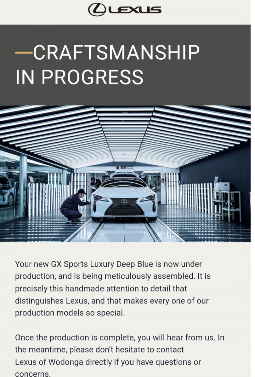 CongratulationsG'day Aussies I got a email from Lexus Australia to say that my Sport Luxury is now under production can’t waitView attachment 7397