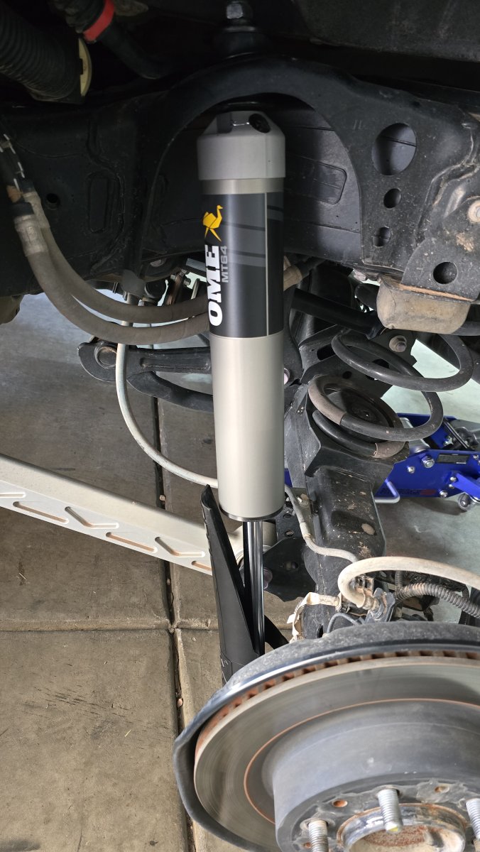 Which rear springs did you go with? TIA.I installed the MT64 shocks. I only wanted 1.5-2" of ride height increase to make the front level with the back. The front shocks were set to the highest perch (20) from ARB.