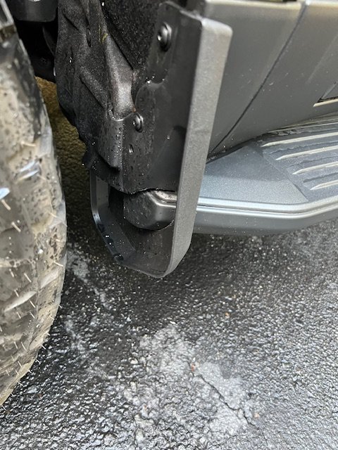 I have some old defender flares I may cut up and try, but hoping someone had something fit up without any cutting/customizing. With the stock tire setup on the OT, you definitely sling mud/dirt/water all over the side and rear.I'm looking into making a set of short mudflaps that just come down to about the level of the side sill. Something to provide coverage for the area pictured below. It's just thick rubber that is easy to cut and then bevel the edge. I'm really interested in those Jaos extended fender flares....