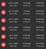 Oof… 6 trips to gas station in 21 days…. The car i’m coming off of was 4 maybe 5 times in 30 days, and thats putting 20k miles a year on it…. This is gonna be a lot of stops to get gasHere are my last 6 fill ups that show MPG calculation to give you an idea running on 93 octane fuel with a broad mix of highway, city and rural driving. Also, some very mild driving and some spinning up the turbos a little bit.