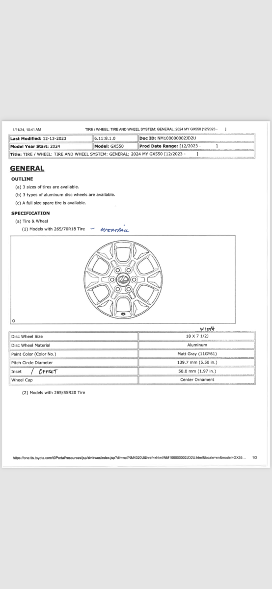 Should be 18x7.5J ET50 6x139.7mm(5.5”)
