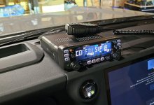I installed an Icom IC2730B radio. It is a reasonably small radio with a very easy to read display. It looks funny in the photo because it was scanning when I took the photo. The radio can also be modified to work outside the amateur bands which I need to work on business band radio systems I work on. I I used a hood mount for the antenna to allow me to drive into my garage. I just attached the radio to the dash with velcro and also used a piece to attach the mike to the radio. I needed to use some flat black aluminum foil (Cinefoil) to reduce reflections from the heatsink and power connector. I might also repaint the top of the radio with flat black paint to reduce the reflections from the slightly shiny radio. I used the AUX connector under the dash to get a 15A circuit controlled by the AUX 3 switch. I didn't find a mating connector online, so I just used a couple of 0.25" female disconnects to connect to the two large tabs in the connector.