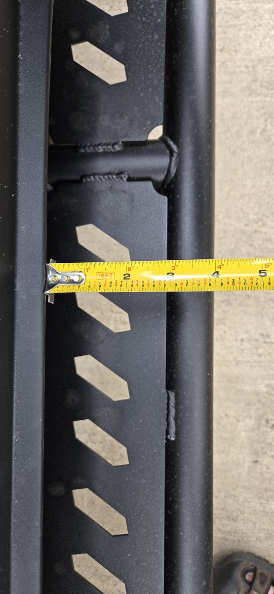 In case anyone is looking for dimensions. They are stick out 4" from the bottom door sill. Foot in the other pic is a size 11. The top of the slider is actually 7" wide and is lower than the door sill allowing foot to slide under the sill a bit. Makes for a really nice step.