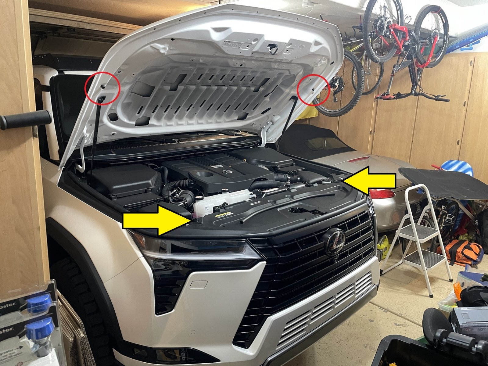 @Bluegill I assume you mean you don't want to remove the trim piece that is in the way, and not the actual hood itself, which is not necessary. Its super easy to take the trim off, especially if you order replacement clips in advance like the ones OP suggested. For anyone looking to DIY, you will also need to order the applicator gun for this foam. Use the foam SPARINGLY as a reinforcement and check the results before adding more. A little goes a long way.