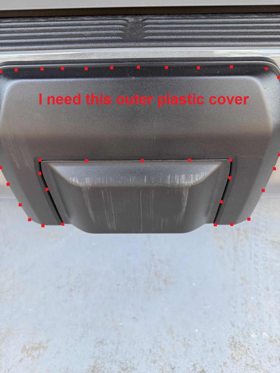 Pm meIf someone does have the entire plastic cover available, I am in need of the outer part whereas Incognito.gx only needs the inner part.