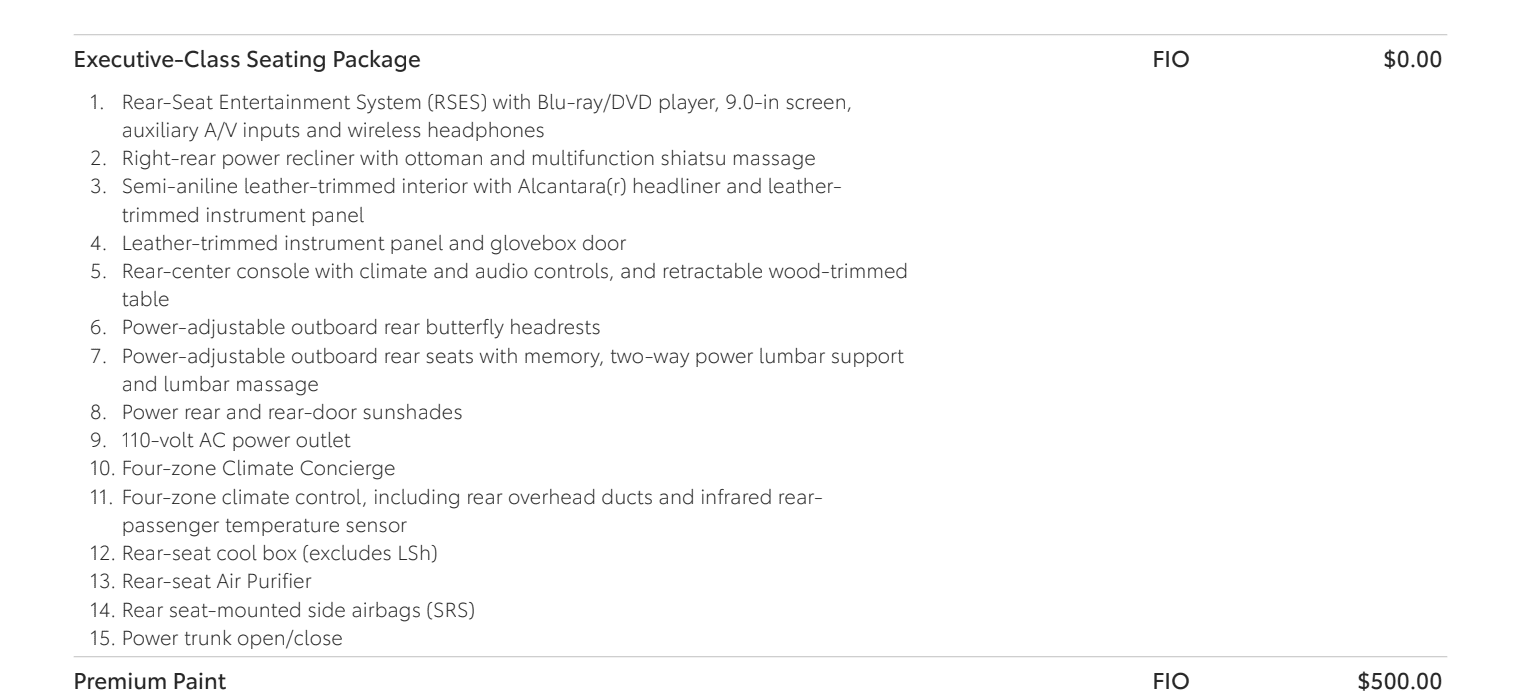 Well the options online seem to be different from how they are getting built, mostly that there are options not talked about anywhere that I can find. The three Luxury Plus's they have coming all are $85,000ish, because of rear DVD and exc. rear seating. I can not find a picture of this anywhere, at all. Does anyone have any info on this? I don't think I want this. I don't need or want DVD, power ottoman, and rear seat (pass side only) massage, etc. Nervous about resale, and nervous about the second row folding flat. I haul stuff not people.