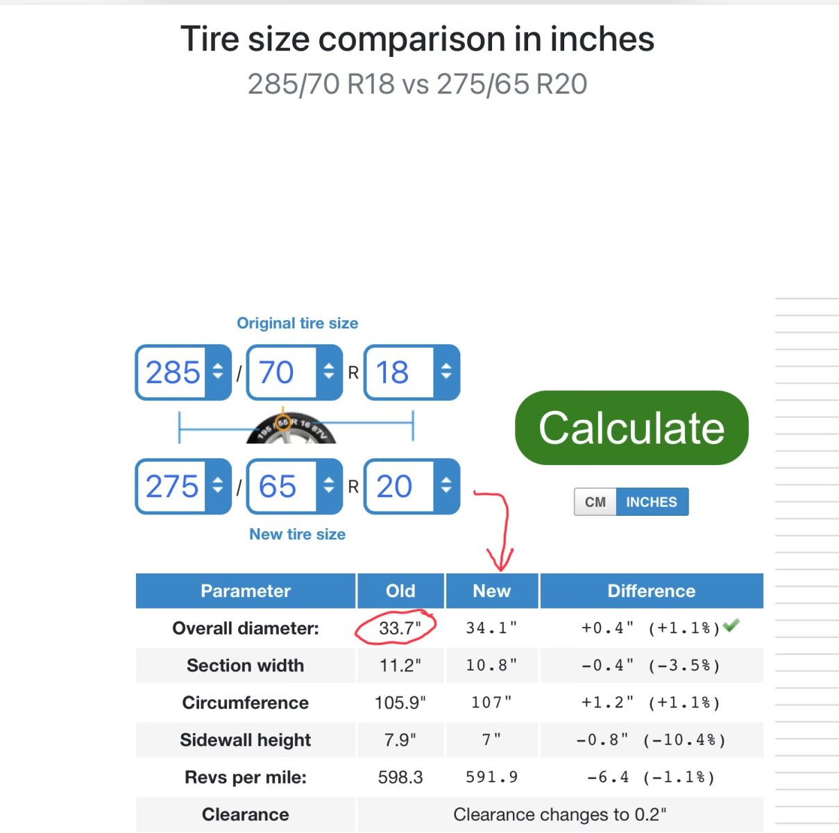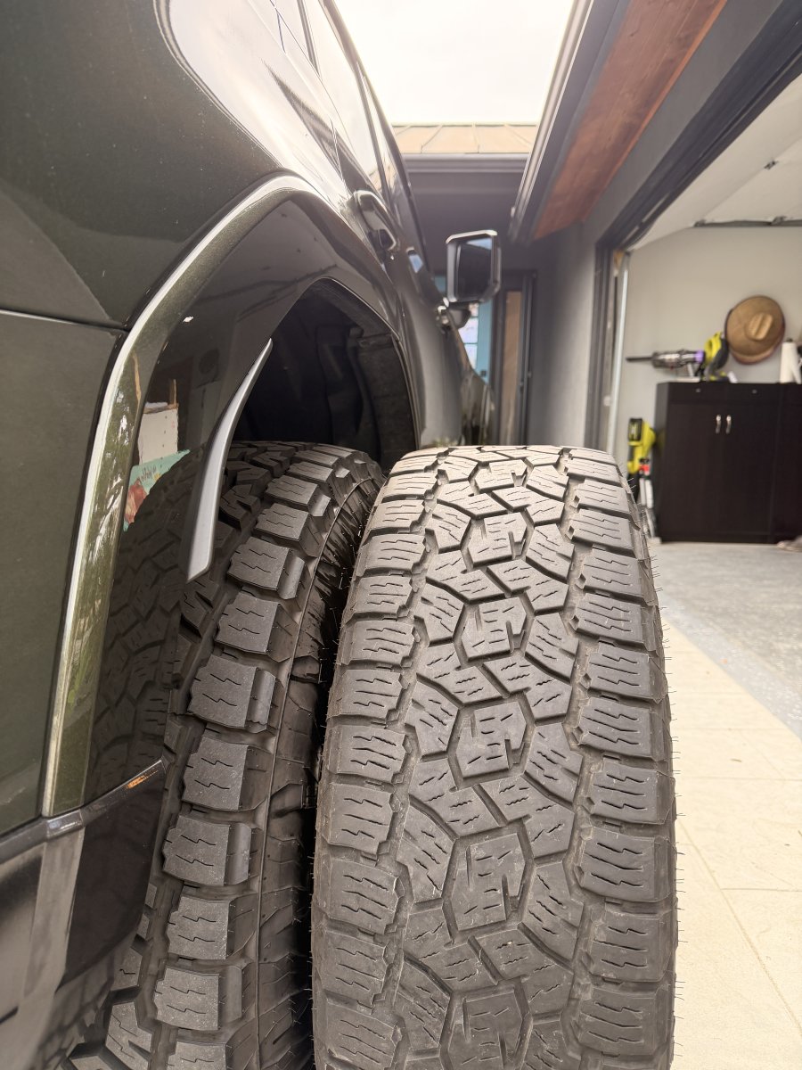 What’s the largest AT tire you can fit on the STOCK 20 inch Premium Plus wheels and still fit (even if just barely) in the spare tire space?