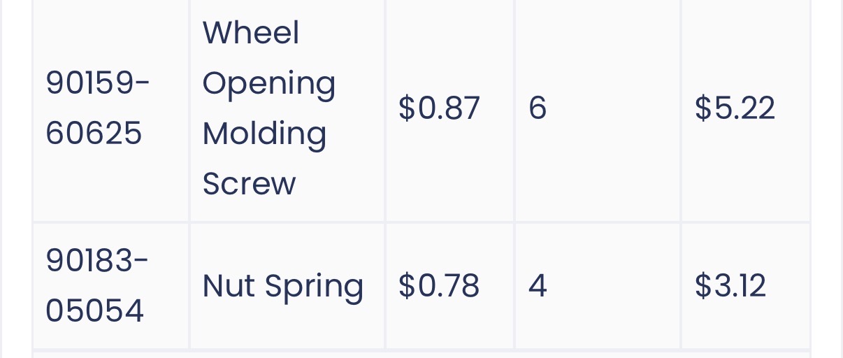 7662660440 | 1 | MUDGUARD, QUARTER PANEL, REAR LEFT |
