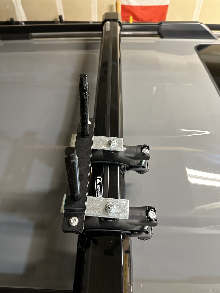 The crossbars are 26” spacing and are not adjustable, so I had to fab an offset to use with the 24” mounting holes.