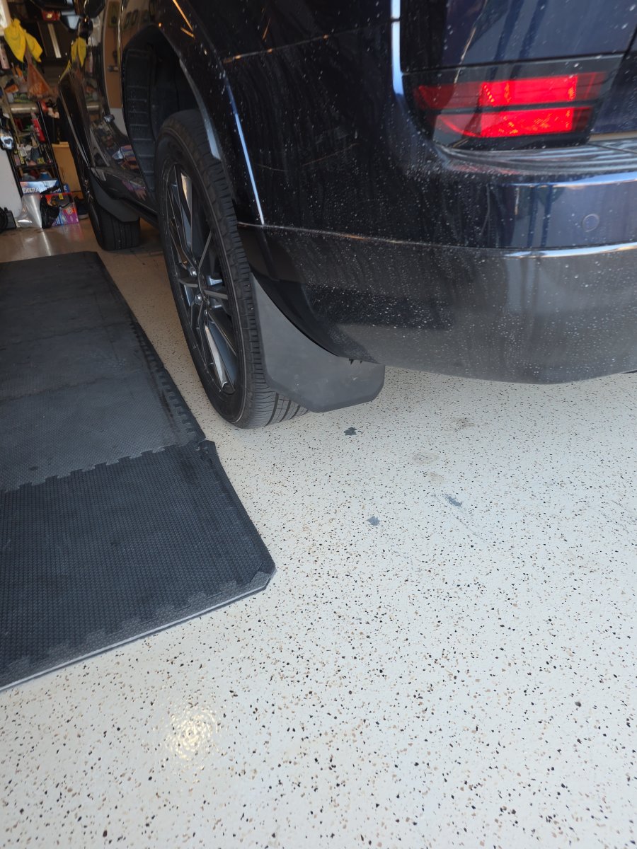 Thanks, looks nice. Did you need an angled drill or did you need to remove the wheels to drill?Here are the installed pictures of the GX550 rear and Toyota LC fronts. Fits perfect on the Luxury plus. You will have to do some drilling on the rears and one spot on the front to install. The rest is removing the existing screws and plastic push pins and reinstalling them. Took about 30 minutes from start to finish. Excuse the dirty car.