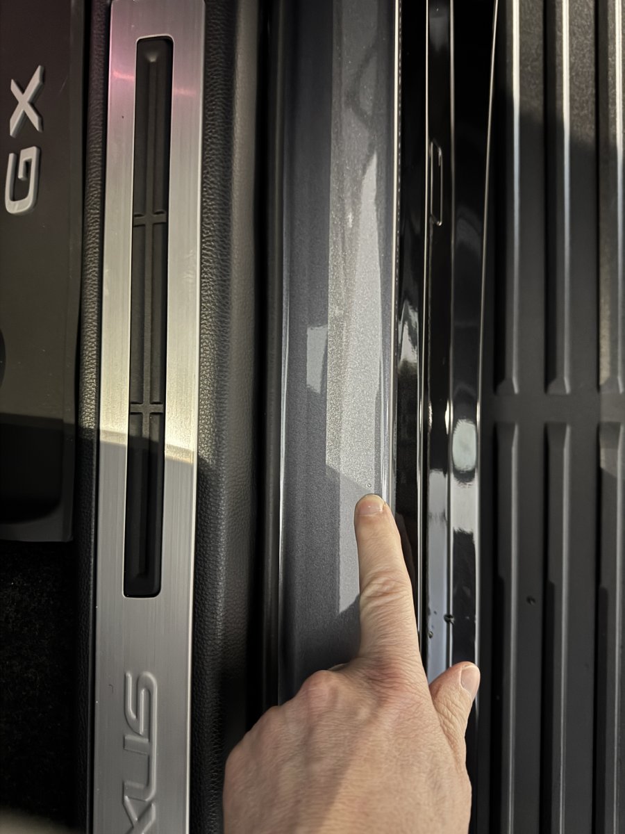 I noticed a rock chip on the inner passenger sill (tiny) probably from the dealer sitting in the passenger seat during the demo.