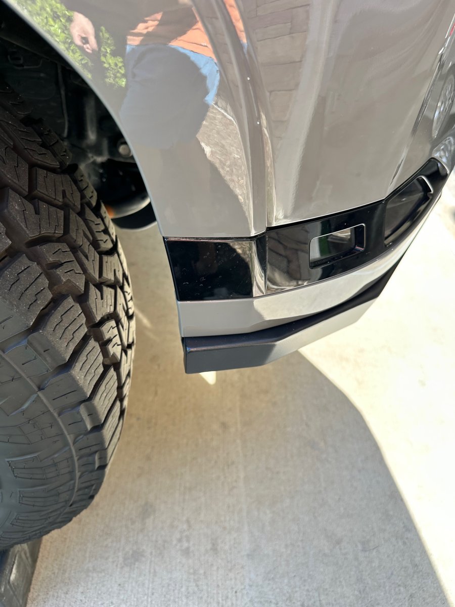 However, there were the two problems. 1) The passenger side wing - for some reason, it will not sit flush with the passenger wheel well and would stick out about 1/4 inch. 2) the fog light bolt mounting points only allowed the fog lights to sort of sit flush with the angle of the wings...which means the fog lights would be pointing to the sides of the road and not straight ahead.