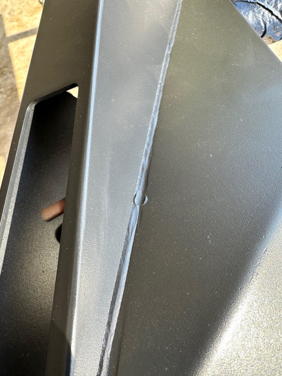 I reached out to NYTOP and expressed my shock and disappointment. To their credit, they responded very quickly and professionally. They said the welds passed their QC standards but offered to pay to have it locally powdercoated in hopes of making it look better.
