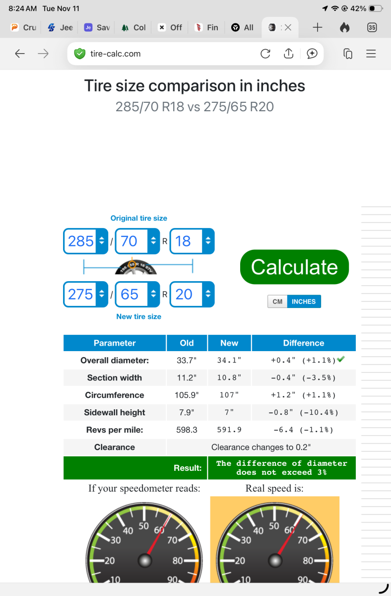 And thank you giving me the confidence that they would fit. I know I would have wanted more tire had I used caution and went with 275/60 as that's what most forums/threads say are the max (without noting that the spare is the limiting factor). 34's fill out the wheel wells nicely.
