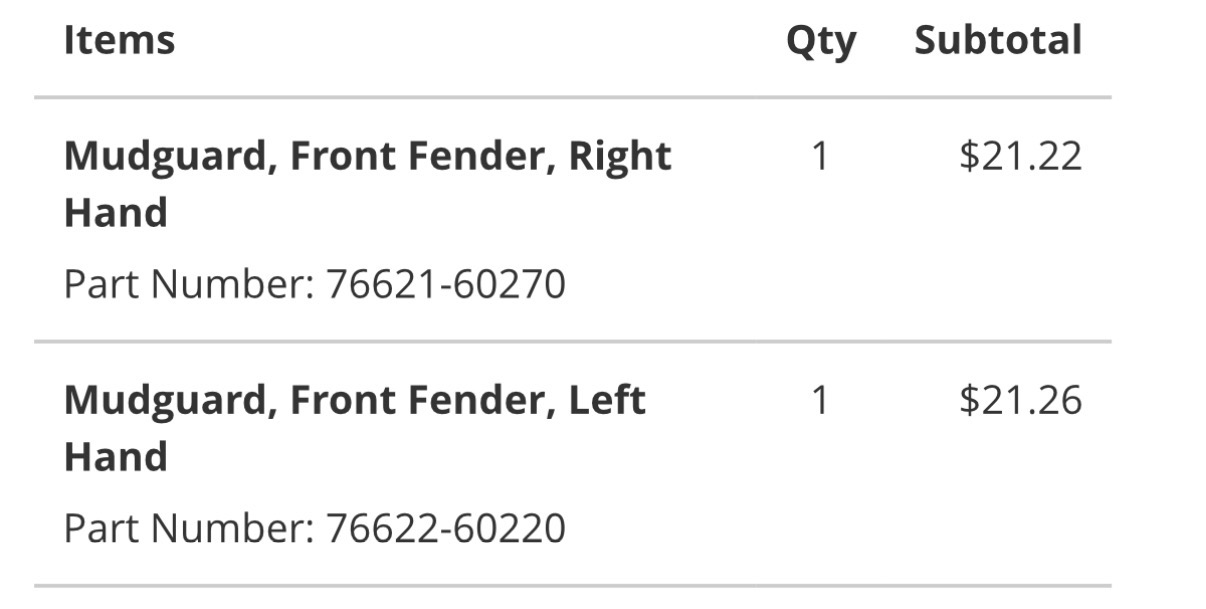 Secondly, do you have part numbers for the oem overtrail GX AND LC flaps or did I miss that somewhere else?
