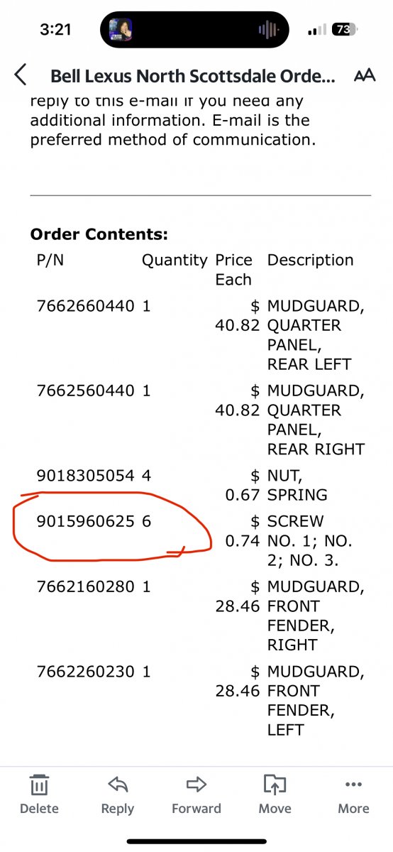 All the OEM parts you need. Only part number that wasn’t marked were the 6 (3 per side) self tapping screws you need for the rear.