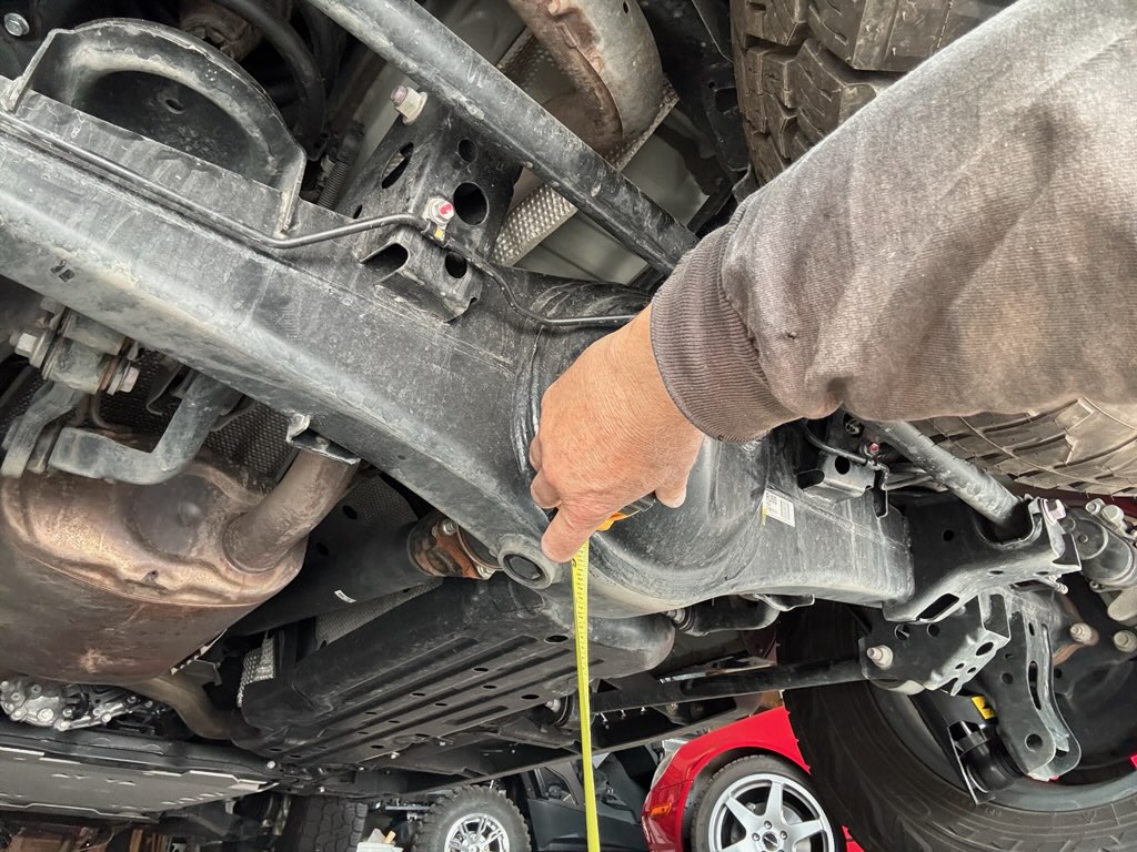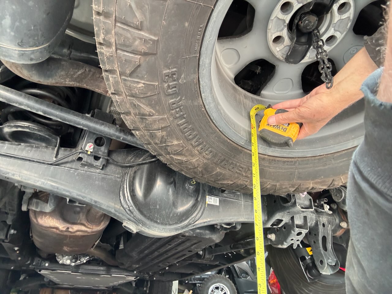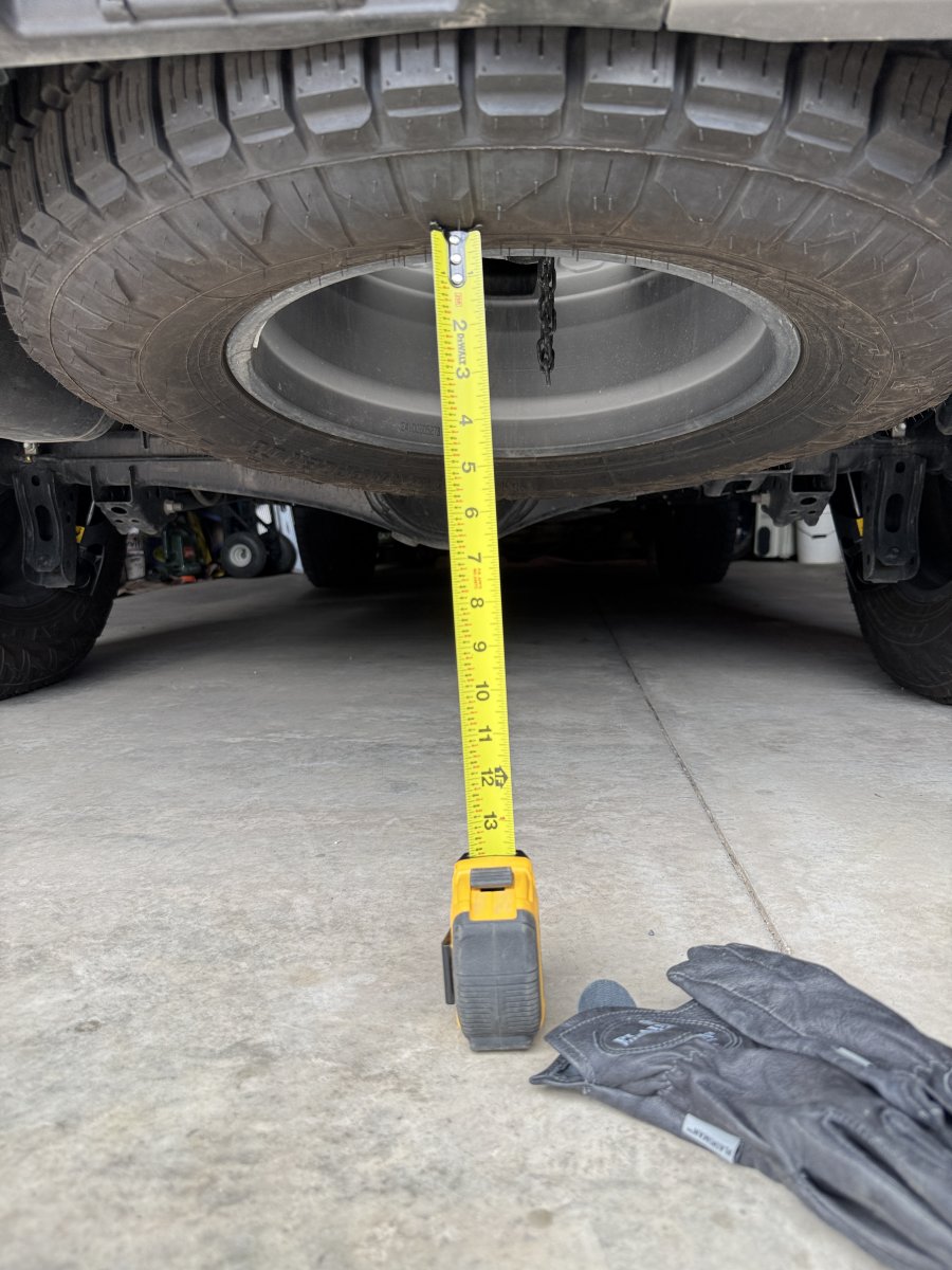 After measuring before and after the lift, I’ve gained the 2.25 to 2.5” right at the thickest (section width) forward portion of the current spare just behind the diff. Prior to the lift the spare was maybe, barely a half-inch taller than the diff. Now, after good measurements, the current spare is at 12” and the diff sits at 9” to the ground. (On the back side of the spare behind the hitch receiver opening..I now have 17” of clearance, which I’m comfortable with).