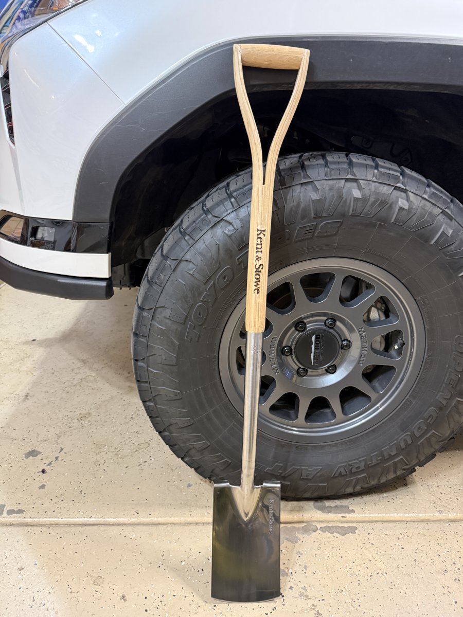 After my December to Remember adventure in the new mud pit at my favorite local camping spot, I realized that I need a good shovel that you can actually dig with for a good amount of time without breaking your back or making your hands raw. I have carried my father's US Army-issue folding shovel for over 30 years but it's more suited for digging fire pits and single-serving field latrines. Since I'm not a $300-super-off-road-overlander-Armageddon-spiked-razor-sharp-shovel-zombie-survival-tool kind of guy, I looked for a useful and somewhat classy alternative. After far too much research, I settled on the Kent & Stowe border spade which is a quality 41" long English stainless steel spade with an ash handle. Two requirements were stainless steel and a wooden handle with a real hand grip. I hate the simple straight handles that dig into your palm with any amount of real work. I'm not a soft hands guy but I also don't dig holes for a living. I found this fine English tool at Walmart online, of all places. $92 shipped to my door. Only £39.99 on Kent & Stowe's UK website which is about $54 but then you have shipping and import taxes on top of that...a few clicks on Walmart's website and it appeared on my doorstep.