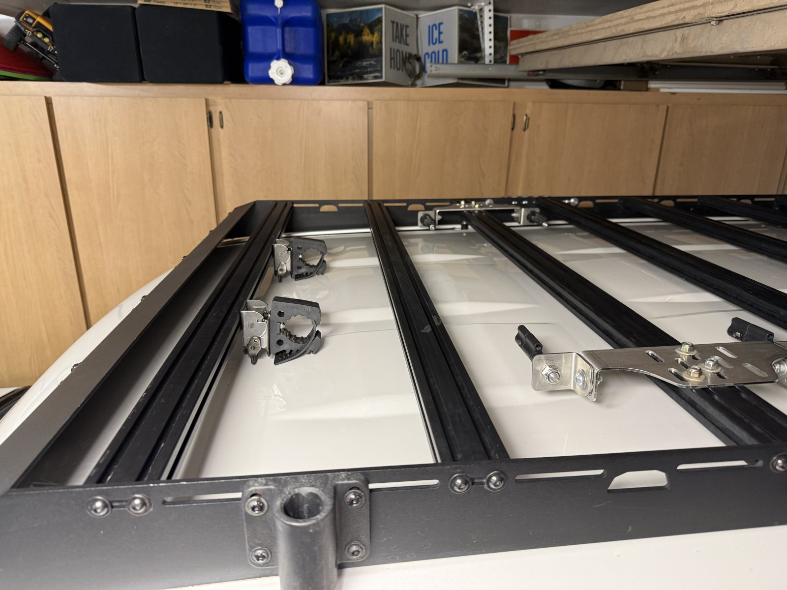 Anyway, tonight I was tinkering, as my wife says, and I finally finished my new shovel mounts for my roof rack.