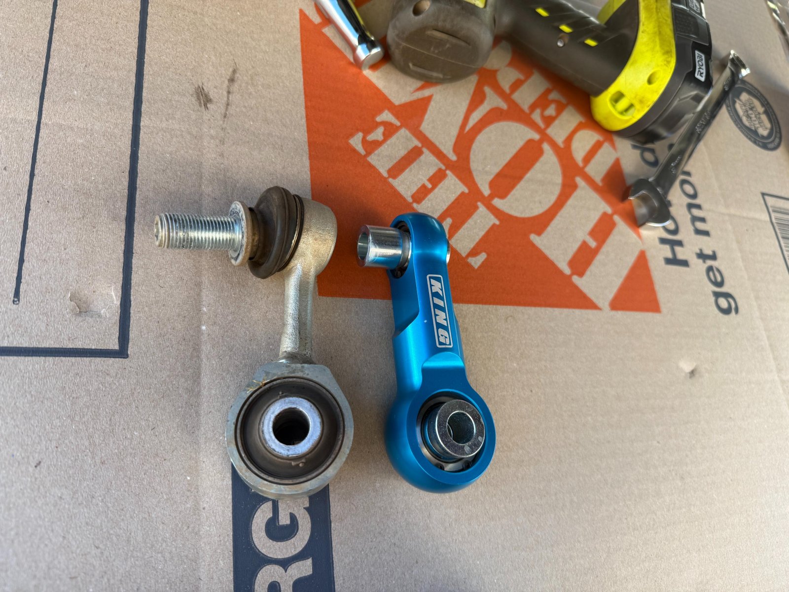 Today I installed my King front sway bar links. Not sure they are really necessary but what the hell. Next will be rear lower arms. In hindsight, I should have kept those nice anodized blue Camburg rear lower arms. Maybe I'll order them back.