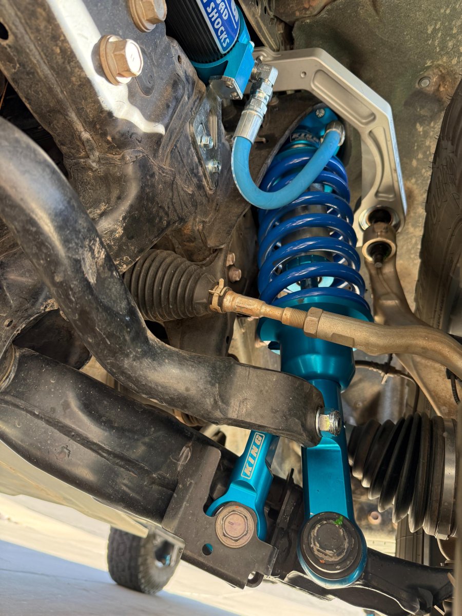Hey Bill, where did you buy the sway bar links? Most places that I checked don’t have them in stock. Stopped by King who put me on the list but they are 8 weeks out.I've been enjoying the King suspension. Haven't been able to do much offroad driving yet but I've had a few jobs that have taken me out into the desert. I drove for a while with the shocks set about 10 clicks from all the way firm (there are 26 clicks total adjustment so 13 would be the middle between all the way firm and all the way soft). While offroad yesterday I adjusted to only 6 clicks from all the way firm. Makes a big difference. This thing handles almost like a sports car when you firm up the settings. There is virtually no body roll while cornering. I'm going to drive on 6 clicks for a while, then dip into the softer settings to try it out.