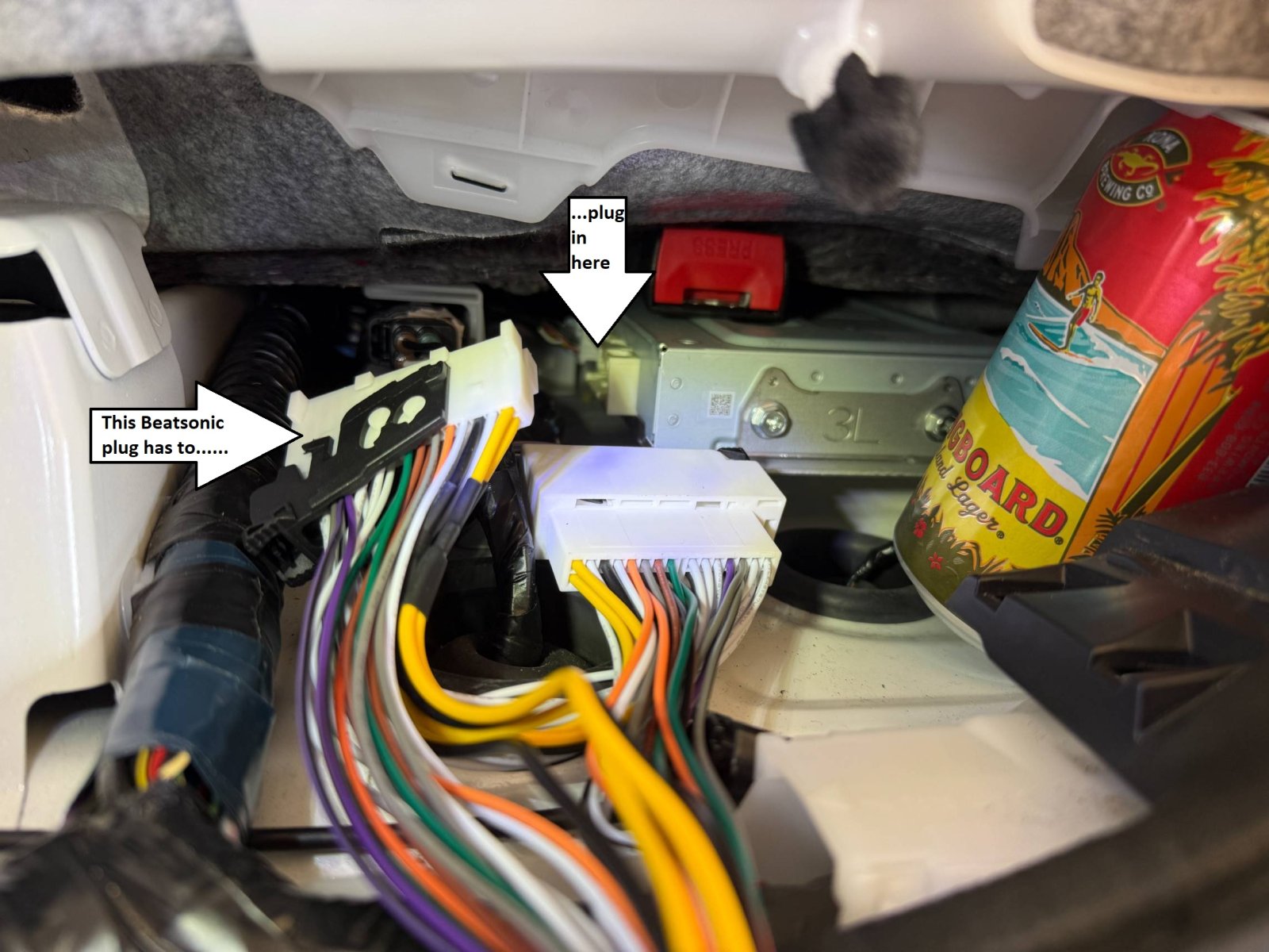 The instruction video show a nice bit of generous wiring lead on this clip so you can pull it out and have some room and a pleasant experience plugging in the Beatsonic main secured clip, but they must have been short on wiring when they built my truck because I had no room to pull out the clip, I had only a fraction of an inch of room to move the clip around. Then I could not, for the life of me, get the black security clip to snap home. It eventually happened but I left some scraps of flesh and blood under there.