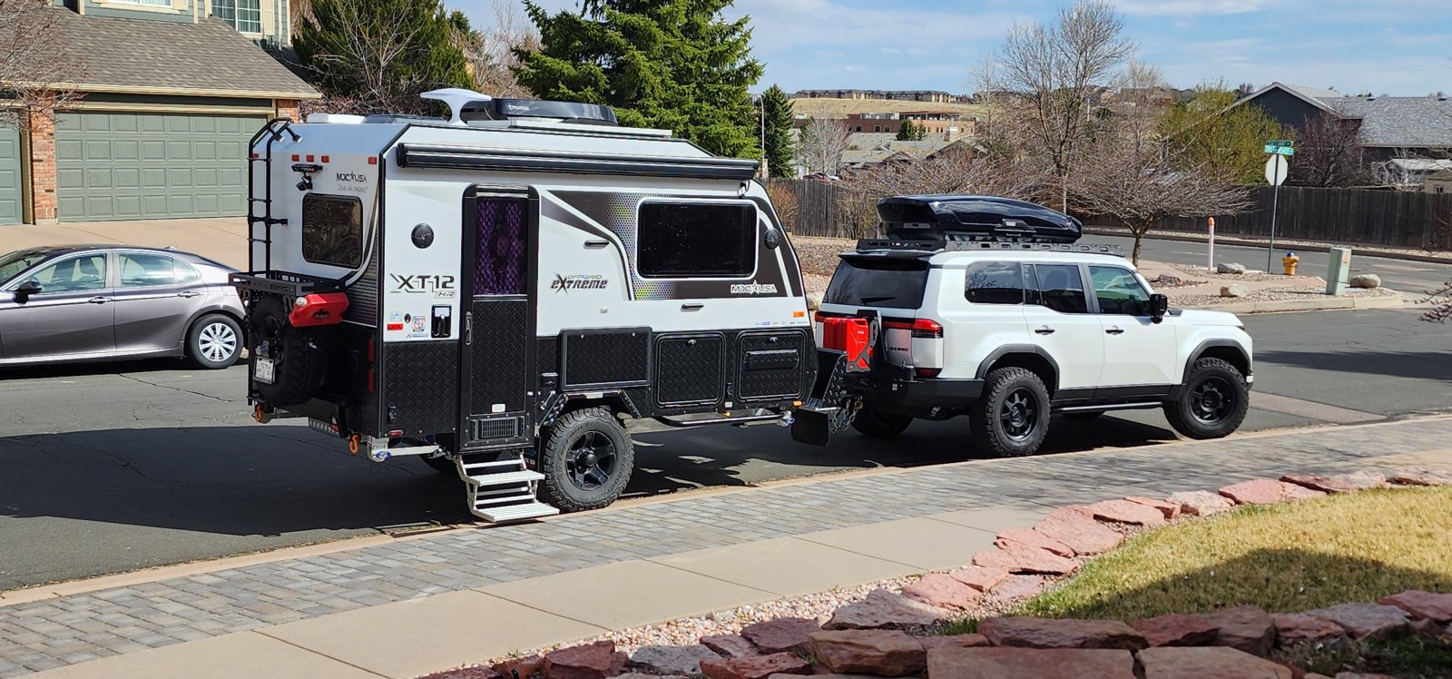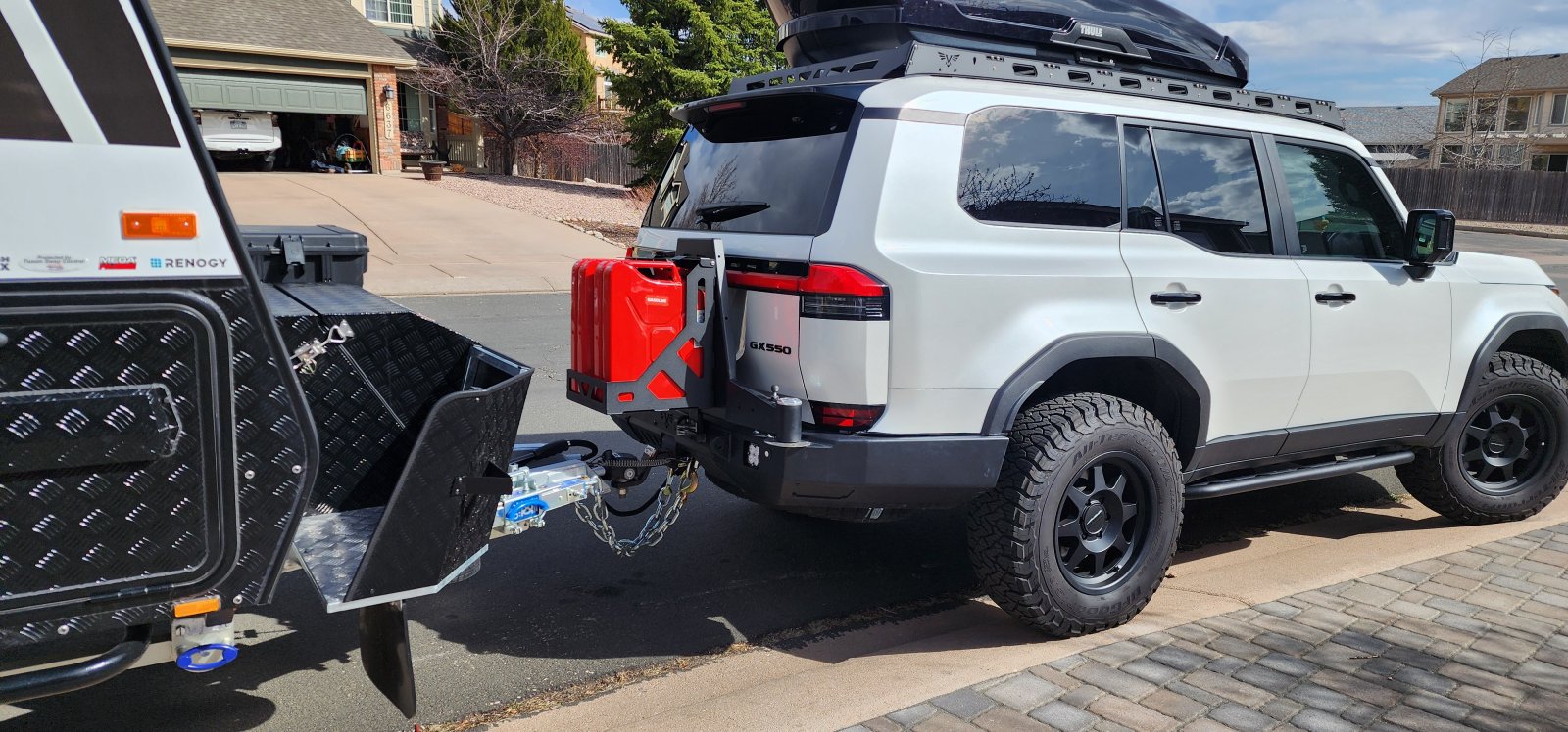 I replied earlier in this thread (#33). Since then I have switched to another camper and have upgraded my rear springs with air bags, and added a Victory 4x4 rear bumper with a swing out to carry two 5-gal cans for gas. The springs and air bags (at 22 psi) have really helped tame any sway. Plus it all rides very level now. Before with the stock springs and the earlier camper, I got into a sway on I-70 I thought was going to flip me. New camper is a bit lighter at 4300 lbs dry. The MDC campers are pretty rugged underneath so are a bit heavy. But experience so far is the camper does great off-road. Already went to Moab & Hanksville and headed out that way again in May. Love the GX torque!