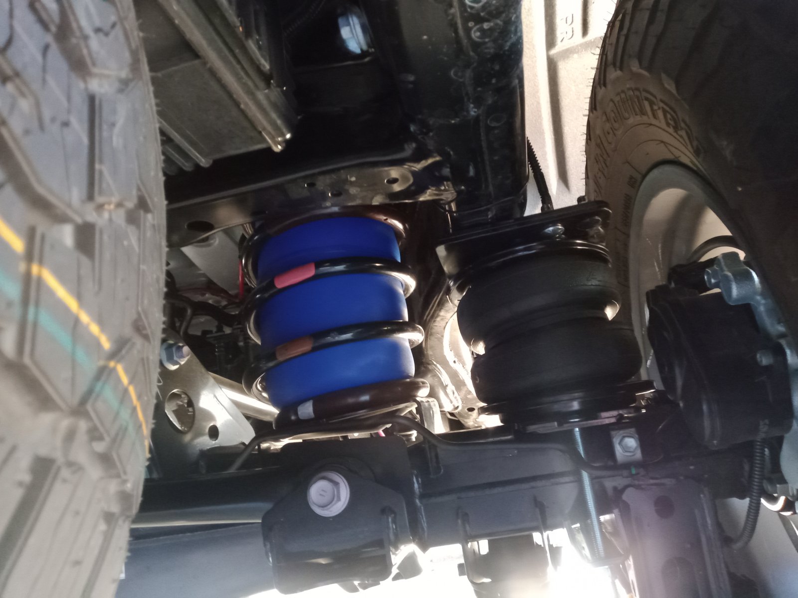 Love your solution here. Have a couple of questions. Does the Firestone (blue) airbag support weight or just expands against the spring coils effectively increasing the spring rate? Is the Airlift bag the one that allows you to take care of the 2.5 " sag? Or is it both bags? TIA!This took care of my 2.5 inch sag. Only need to put 10 psi in these which rides nice. it also lifts the rear 3 inches at the push of a button.View attachment 4491