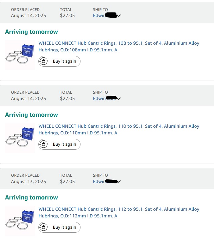 I am starting to compile what I need to install my te37xts I just received and was wondering about how the centercap/hub ring situation will be. I bought the 112, 110 and 108 to 95.1 hub ring off of Amazon to see which one will fit snug. Will report back