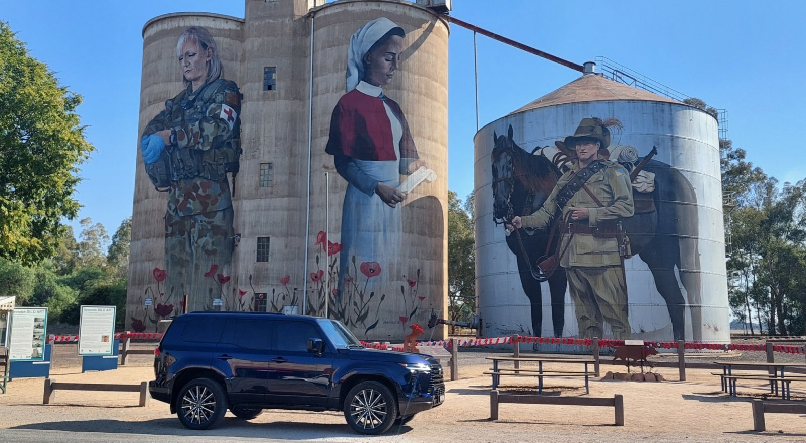 Army Corps) Day is the anniversary of the landing of troops from Australia and New Zealand on the Gallipoli Peninsula, Turkey, in World War 1 on April 25 1915. We celebrate in a small town called Devenish in the state of Victoria where there are this silo art to honour our soldiers. It was also our first long trip in the GX.