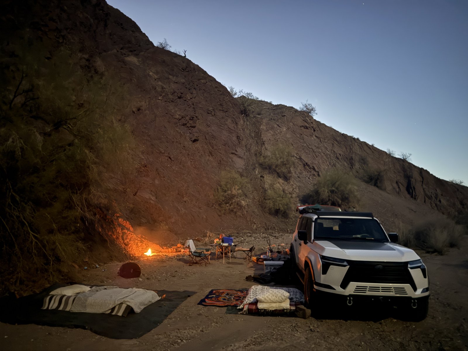 Do you not just leave it on for mileage or wind noise reasons? After getting mine mounted the way I wanted it, it's staying there.I didn't feel like putting it on for this quick work trip. I also didn't bother with the Helebox platform. I knew we could find the shade from a cliff out there for the afternoon and throw the beds on the west side of the truck for the morning sun. We were still up by 6:00 with the sun up at 5:30. It was 105 degrees in the afternoon and only got down to 75 at night.